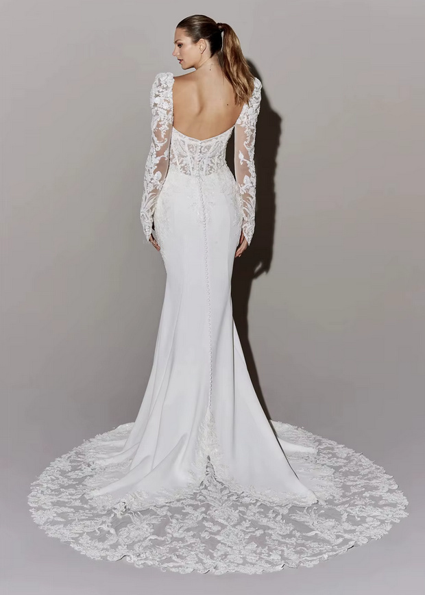 Meerjungfrau Brautkleid Gina mit Lingerie Oberteil Spitze und Schleppe Ärmel Abnehmbar