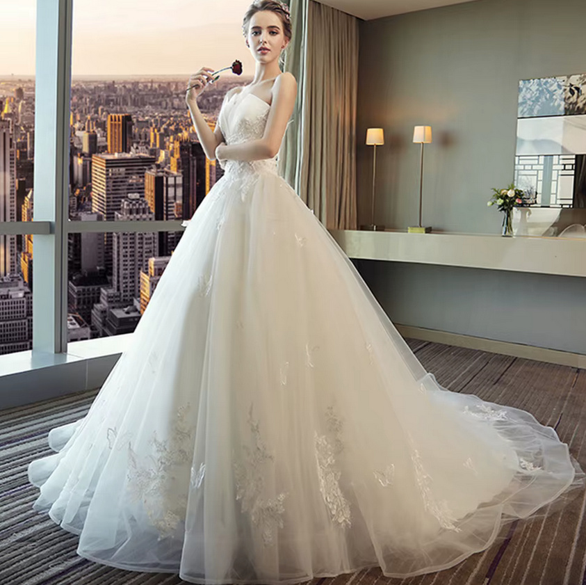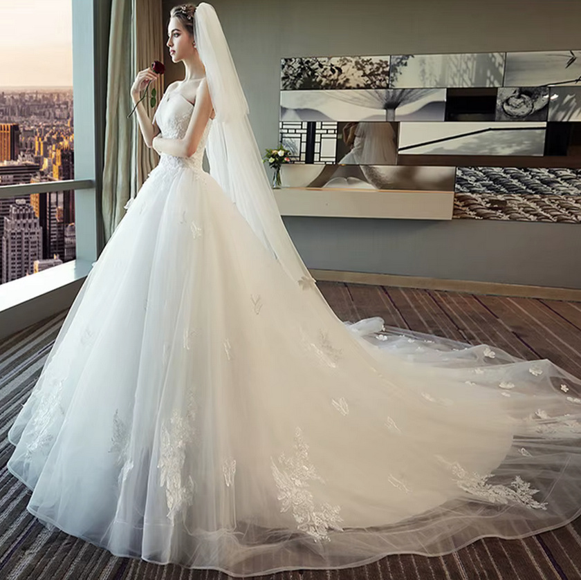 Prinzessin Brautkleid Genevieve mit Schleppe und Blumen Stickereien