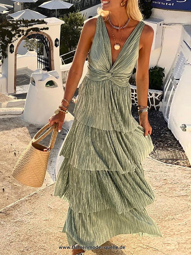 Rüschen Party Kleid für Damen mit Tiefem V-Ausschnitt