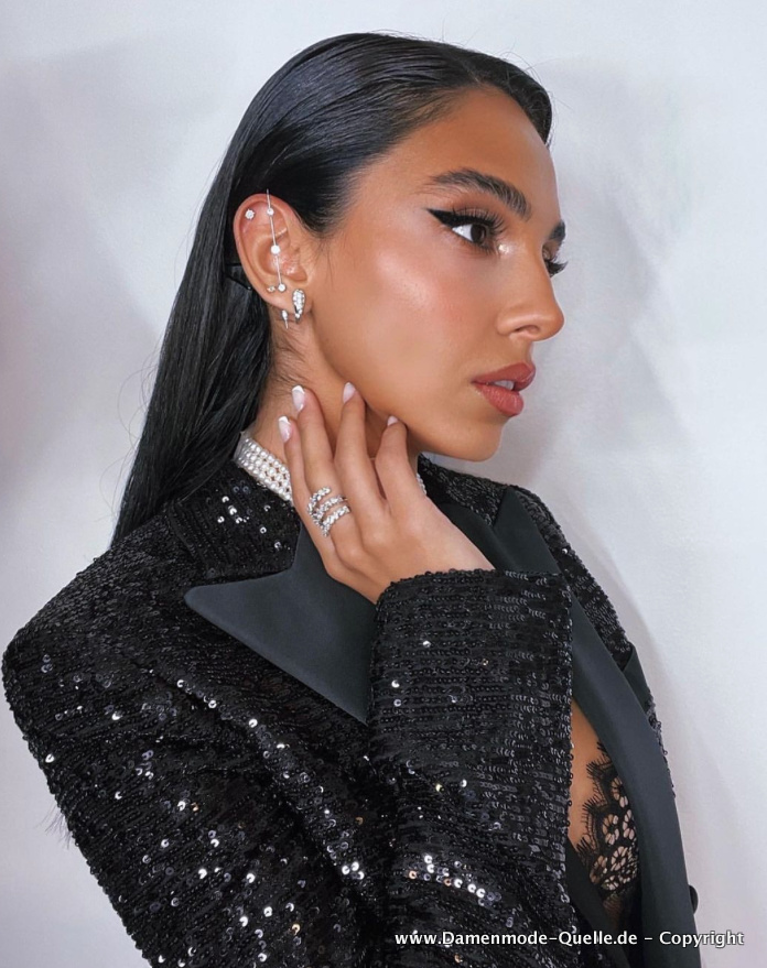 Schwarzer Pailletten Glitzer Hosenanzug Festlich