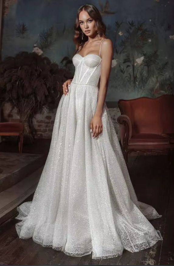 Spaghetti strap glitter wedding dress Gwendolyn