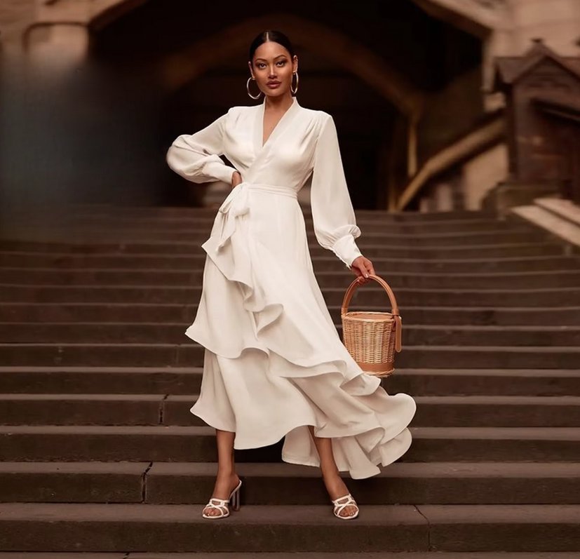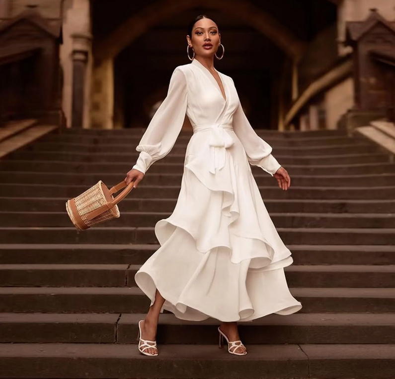 A-line chiffon Paris style registry office wedding dress Gentiana