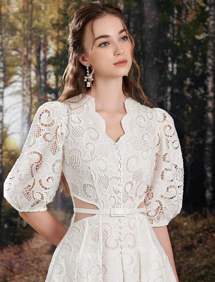 A Linie Standesamt Brautkleid Gloria Wadenlang aus Spitze