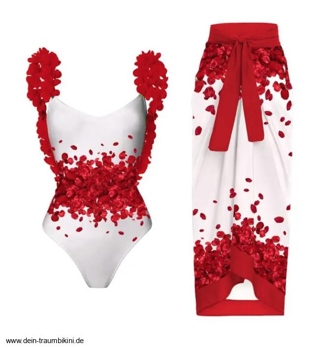 Badeanzug Zora in Weiß Rot mit Rock im Set