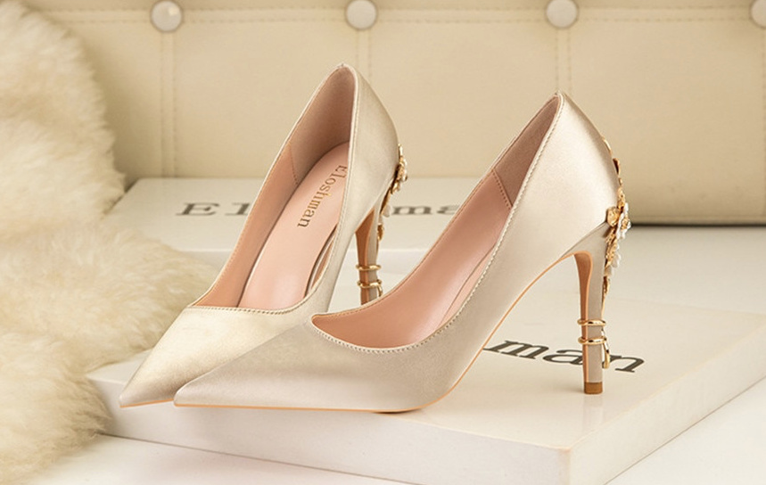 Luxus Brautschuhe Hochzeitsschuhe mit 3D Metall Blumen in Champagne