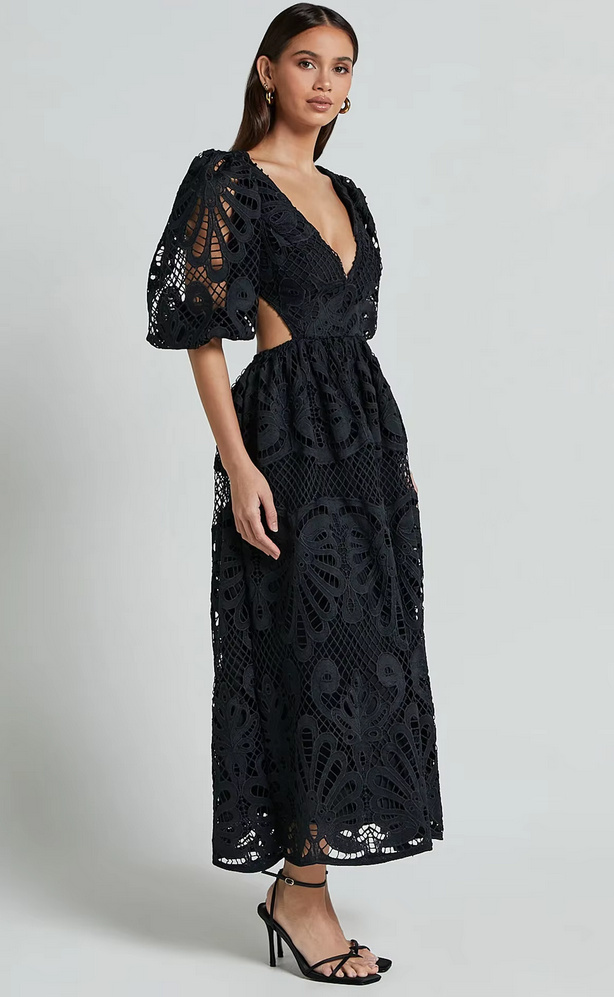 A Linie Cut Out Kleid aus Spitze Elegant für Hochzeitsgäste in Schwarz
