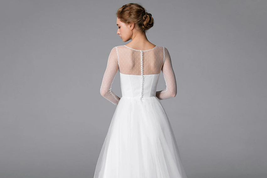 A-line long-sleeved civil wedding dress Annesca with tulle and illusion sleeves