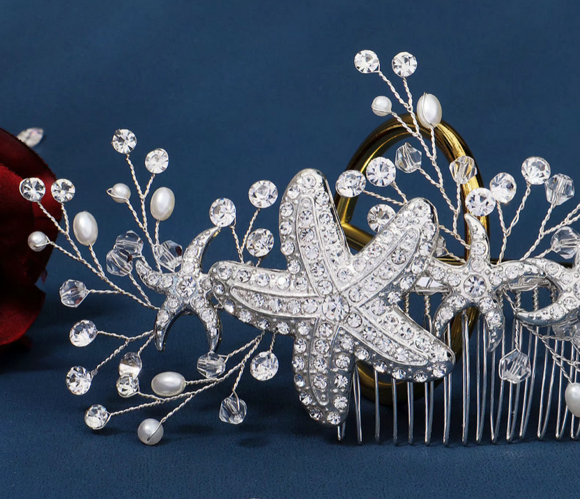 Crystal rhinestone bridal hair accessory hair comb with starfish