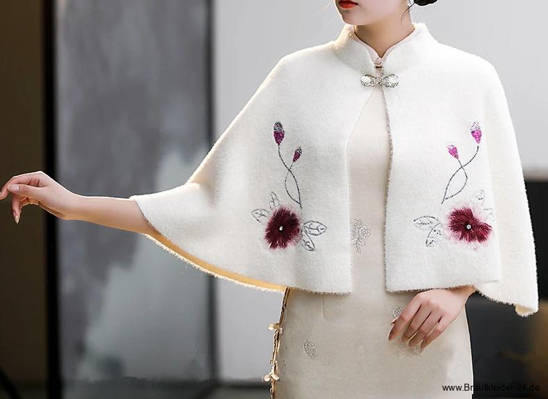 Braut Cape Bolero Wraps in Weiß mit Stickereien
