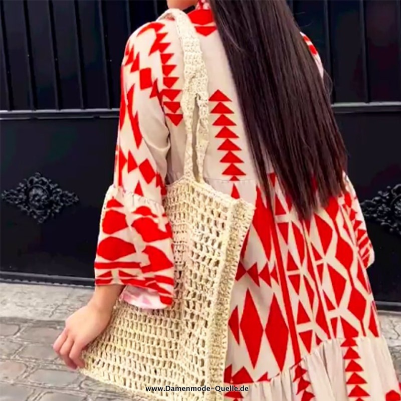 Damen Langarm Kunstdruck Maxikleid in Orange