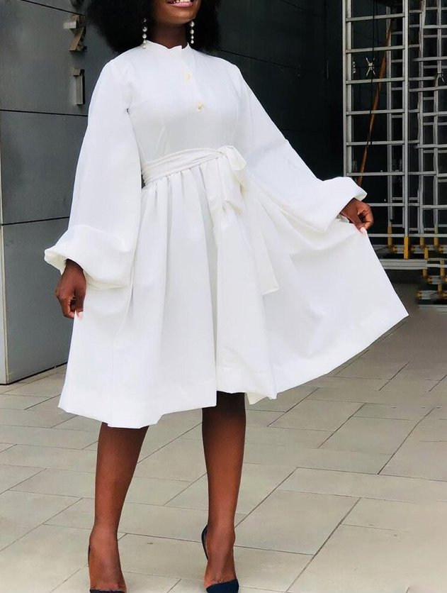 A-line long-sleeved registry office dress for the bride Elegant knee-length