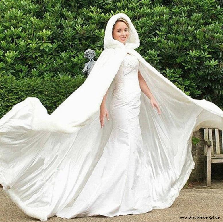 Braut Cape Mantel in Weiß mit Kapuze für den Winter