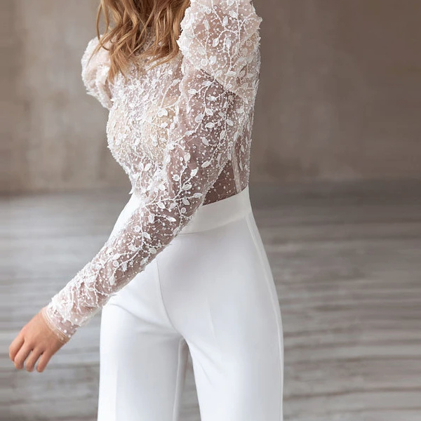 I Linie Braut Einteiler für den Standesamt mit Spitze und Rückenausschnitt