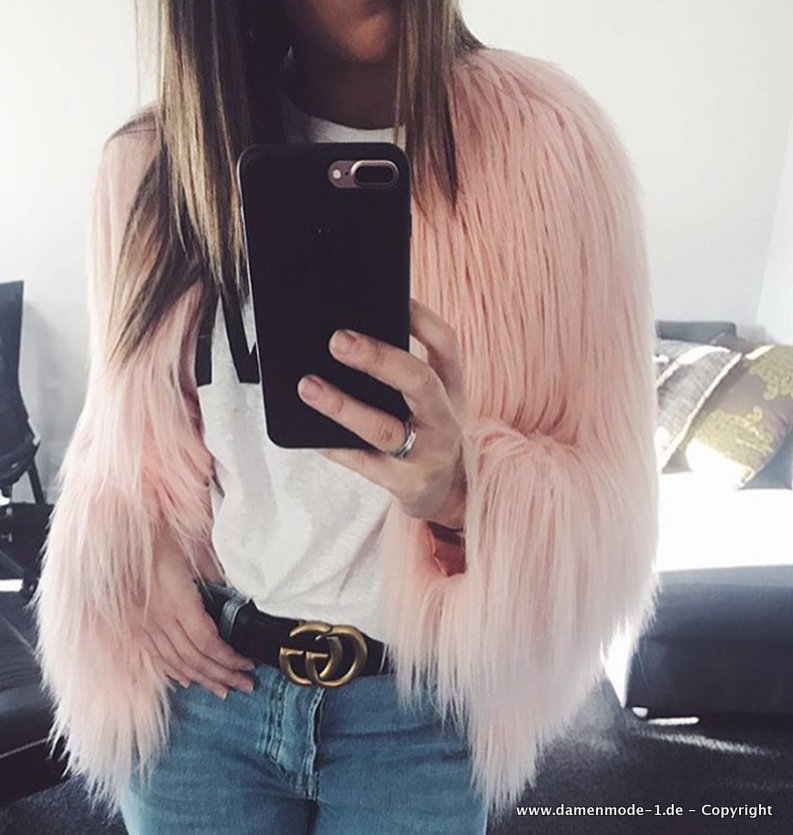 Kunstpelz Plüsch Winterjacke für Damen in Rosa