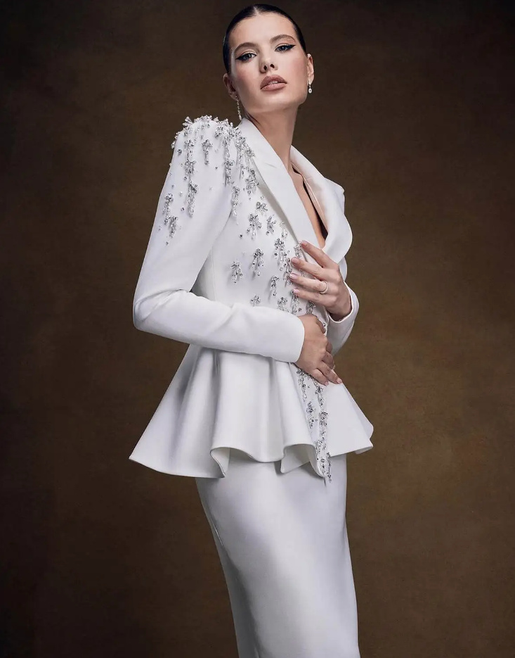 Mermaid ladies costume for the registry office ankle length in white with rhinestone applications