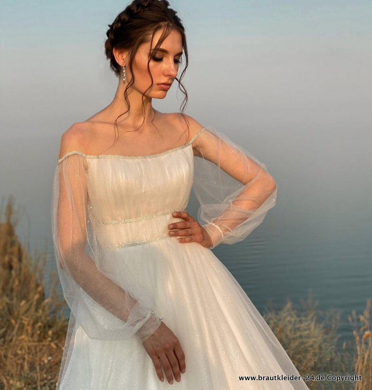 Schulterfreies Prinzessin Brautkleid Anne mit Puffärmel