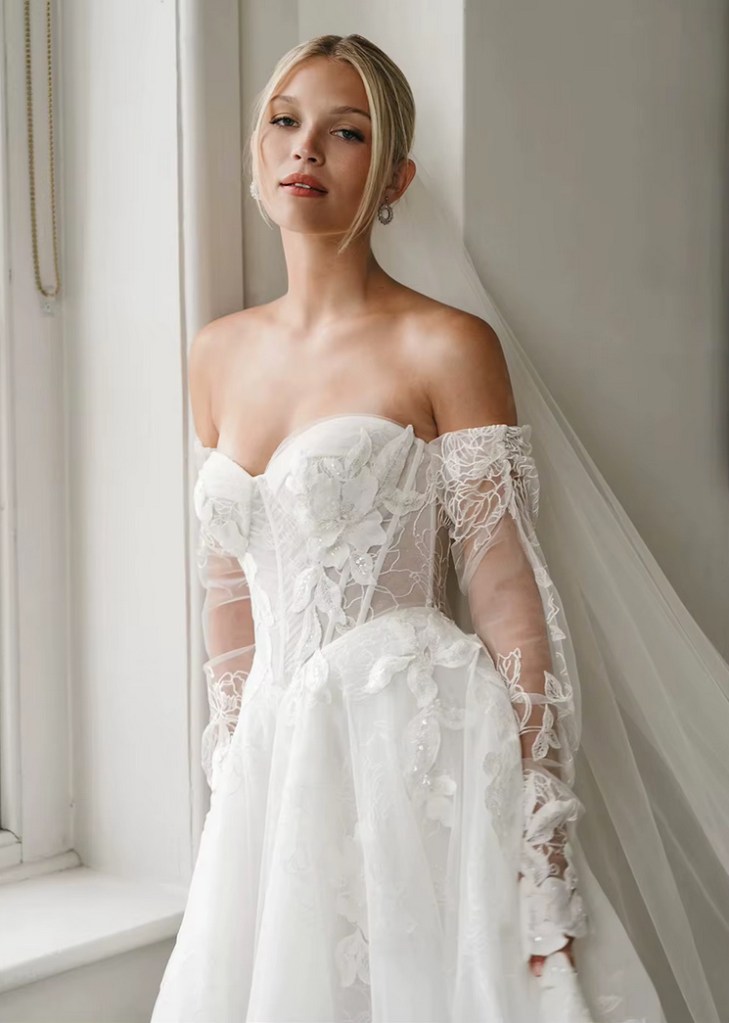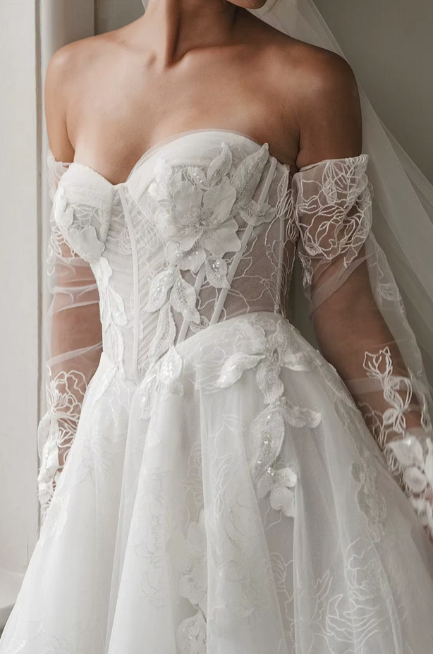 A line boho wedding dress Gianni off shoulder with lingerie top and lace