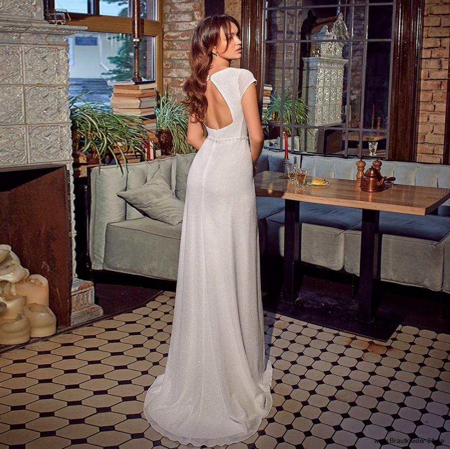 Empire Glitzer Standesamtkleid mit V Ausschnitt und Schlitz