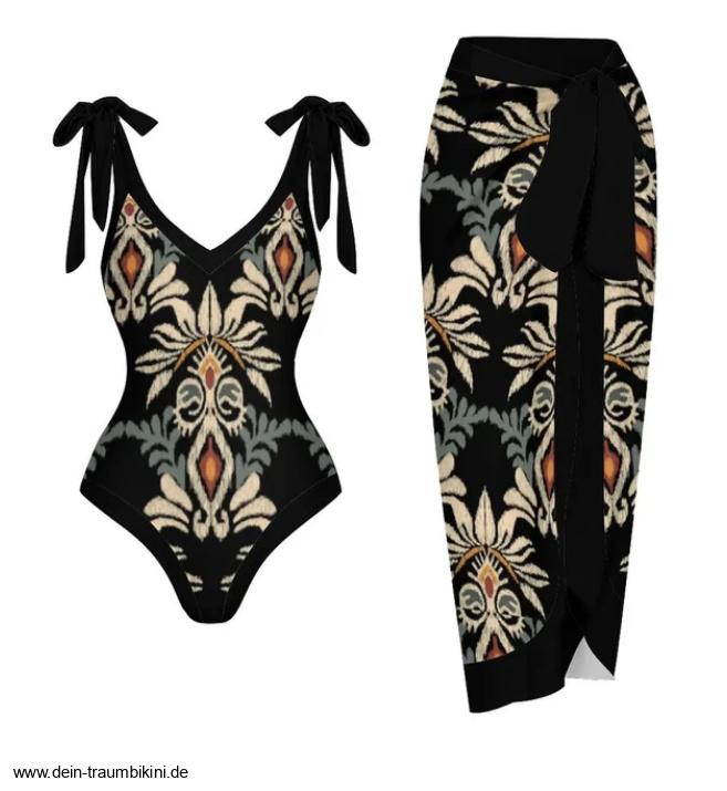 Retro Style Badeanzug Zazou in Schwarz mit Rock im Set