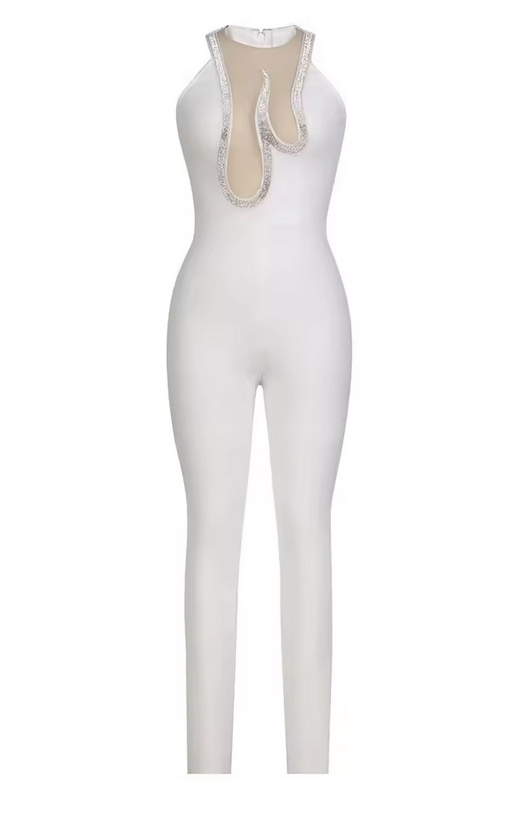 Sexy jumpsuit one-piece for the bride Geena registry office outfit with crystal diamonds