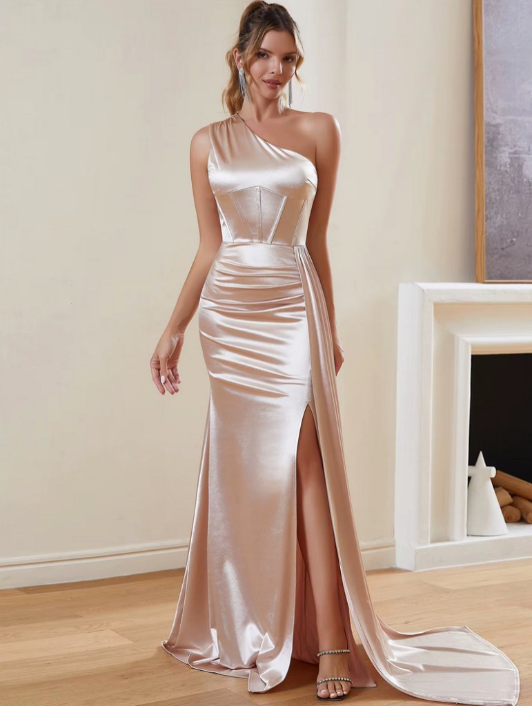 One Shoulder Standesamt Brautkleid Helin in Champagne