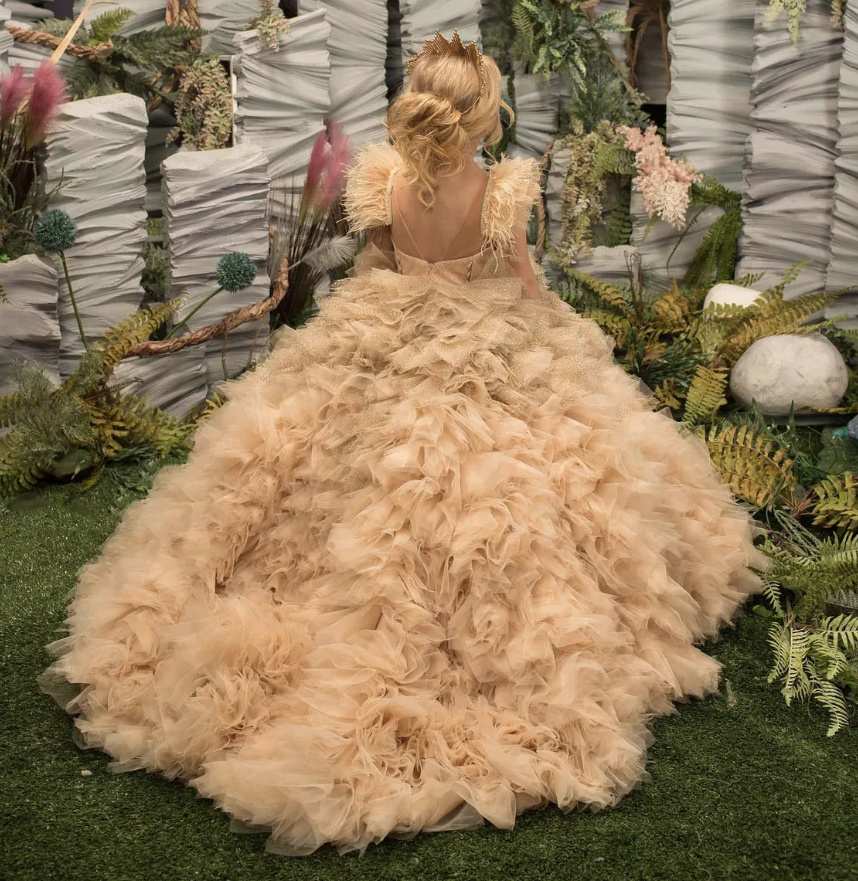 Princess flower girl dress Ayuna with train and ruffles in champagne