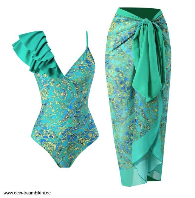 Retro Style Badeanzug Zola in Grün mit Rock im Set