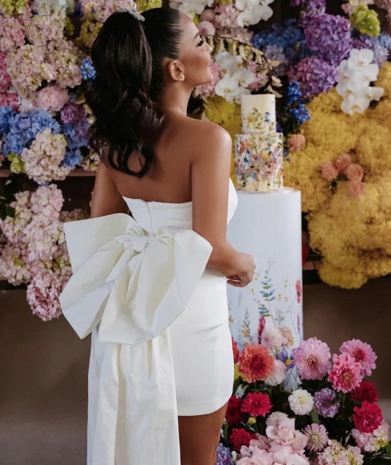 Short Pencil Mini Wedding Dresses Apikalia Off Shoulder with Big Bow