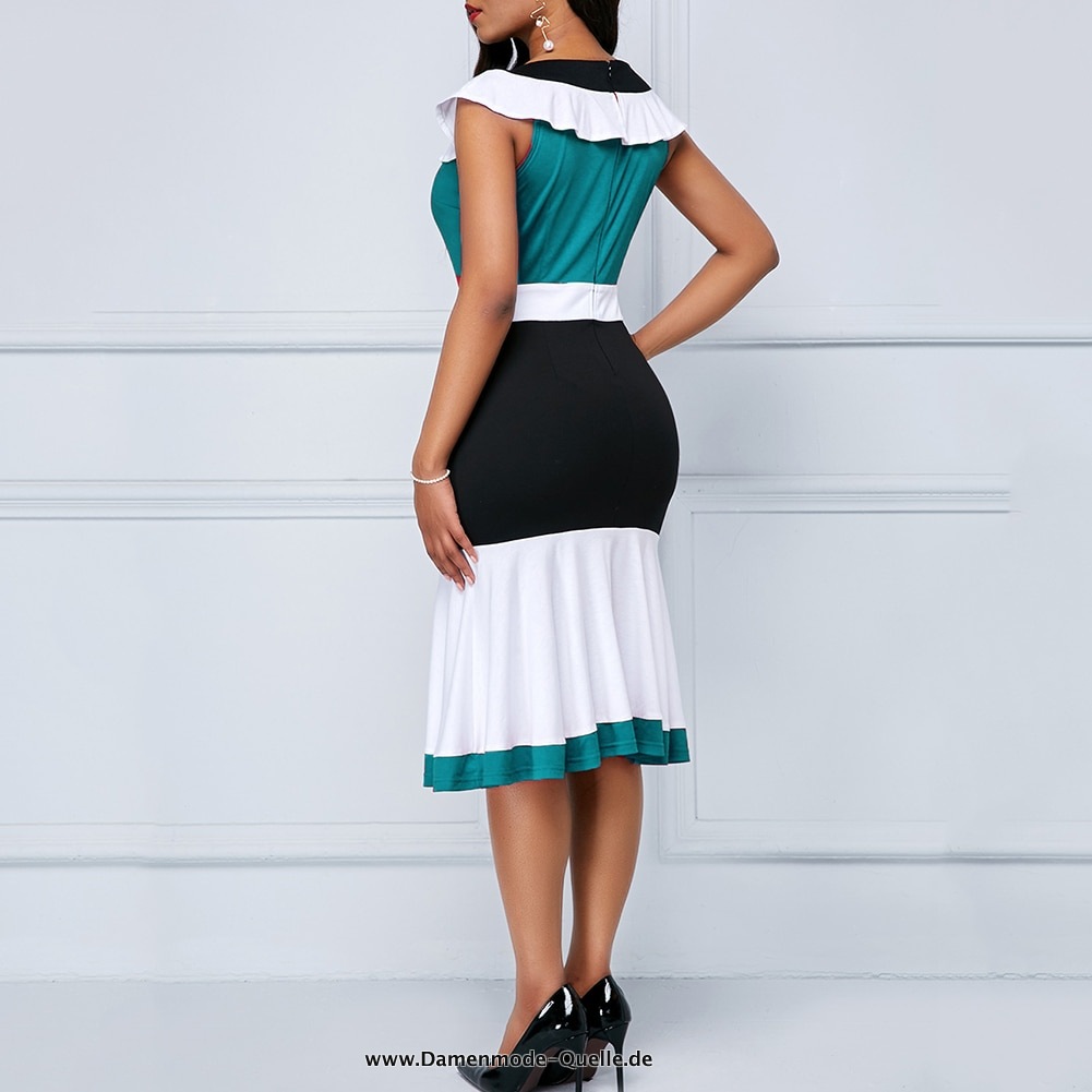 Rundhals Büro Damen Kleid in Schwarz Grün