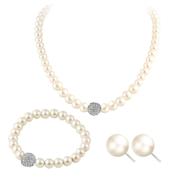 Pearl Bridal Jewelry Set Eika Elegant Necklace Bracelet with Earrings