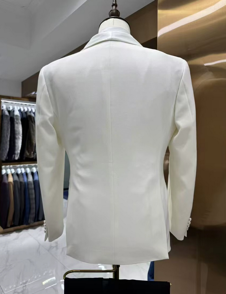 Herren Hochzeitsanzug Zweireiher in Weiß Schwarz
