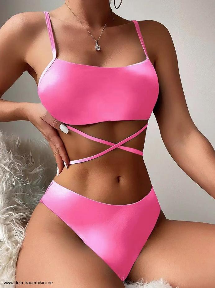 High-Waist Bikini zum Schnürren Gradiert mit Sarongs Pink