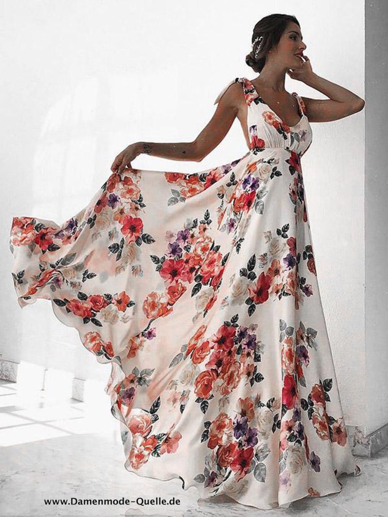Sexy Blumenmuster Damen Sommer V-Ausschnitt Strandkleid