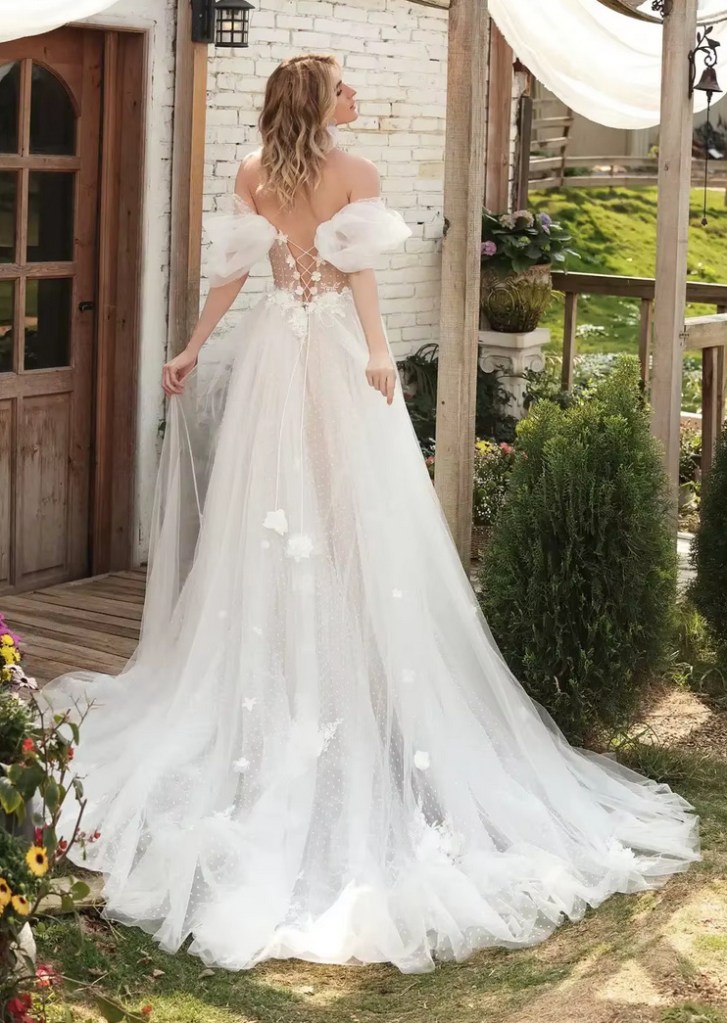 Sexy Schulterfreies Boho Brautkleid Hannah mit Spitze