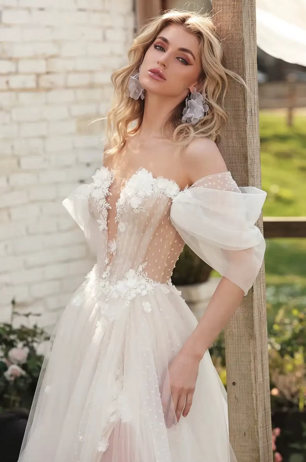 Sexy off-the-shoulder boho wedding dress Hannah with lace