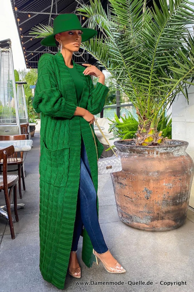 Lange Herbst Frühling Strickjacke für Damen in Dunkelgrün