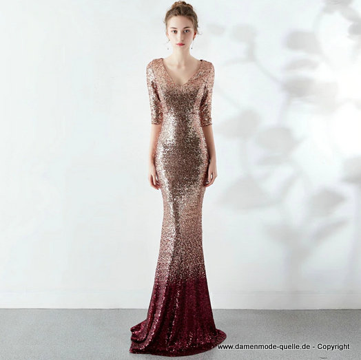 Pailletten Bodycon Abendkleid mit ärmel in Rot