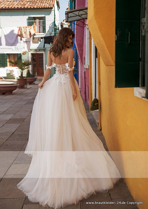 Schulterfreies Tüll Hochzeitskleid Brautkleid mit Spitze