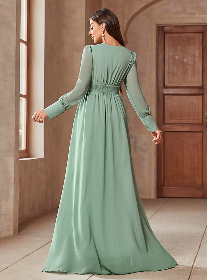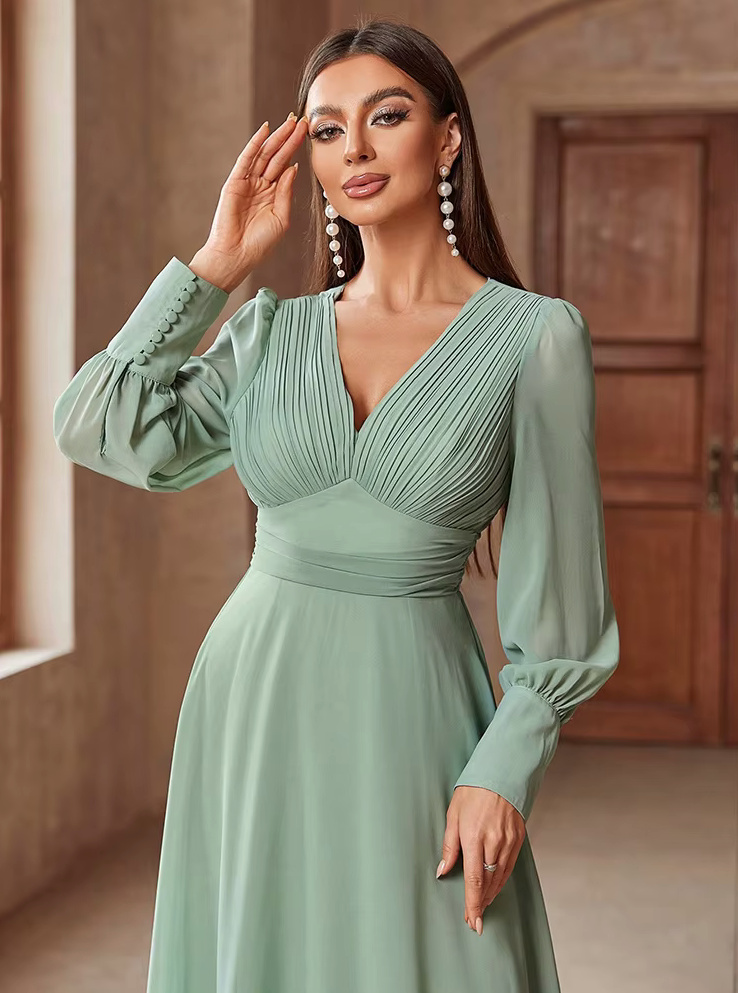 A Linie Langarm Kleid Ileya Elegant für Hochzeitsgäste in Hellgrün