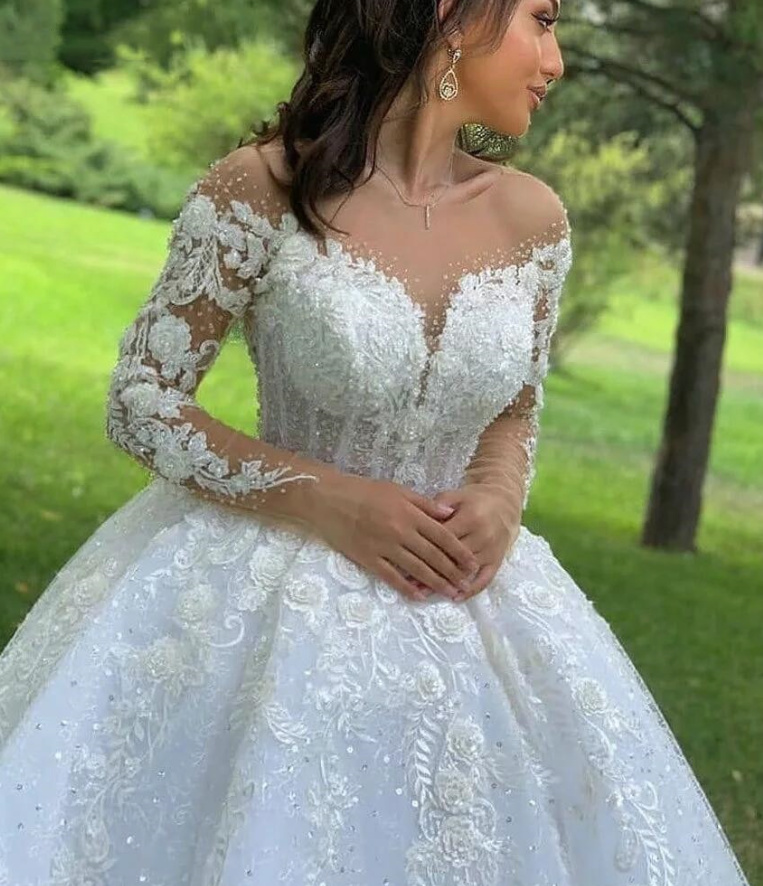 Ball line wedding dress Adele with sleeves flowers and heart neckline