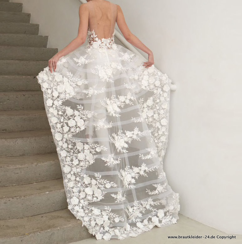 Schulterfreies Mesh Overall Jampsuit für die Braut mit Spitzen Rock