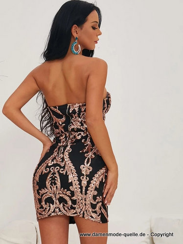 Sexy Trägerloses Mini Pailletten Cocktailkleid