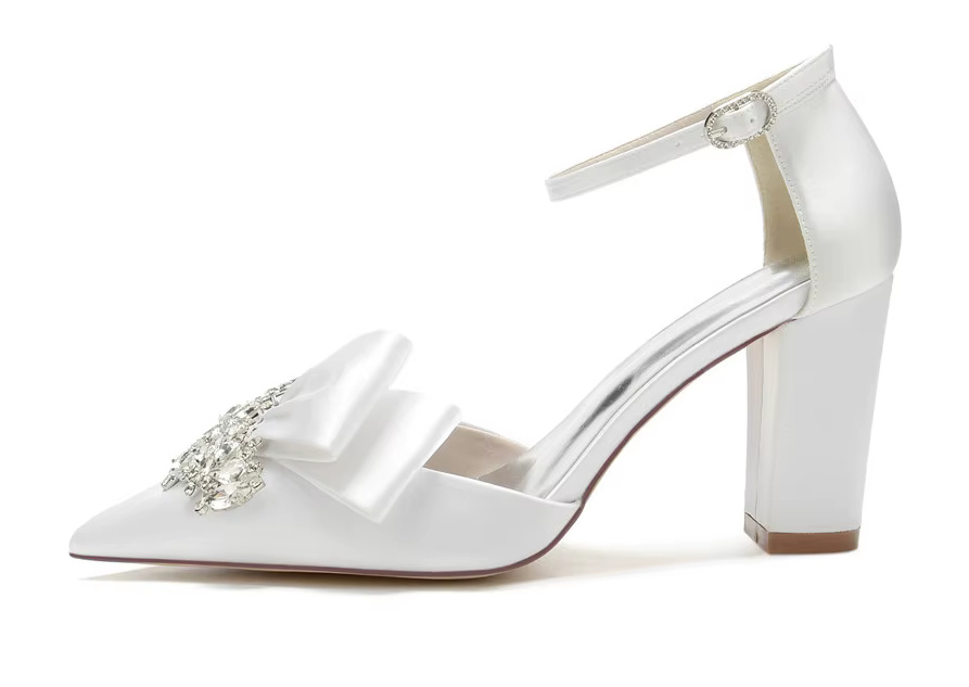 Block heel satin bridal shoes Danielle in white with rhinestones
