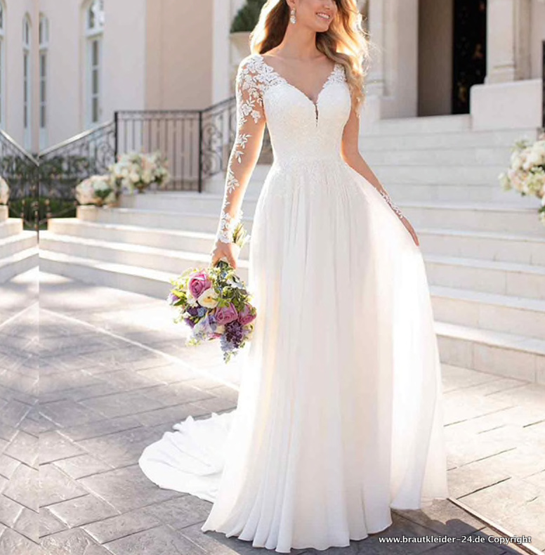Rückenfreies Empire Hochzeitskleid Brautkleid mit Schleppe