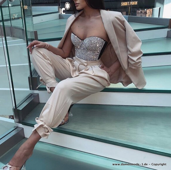 Sexy Hosenanzug mit Schleife in Elfenbein