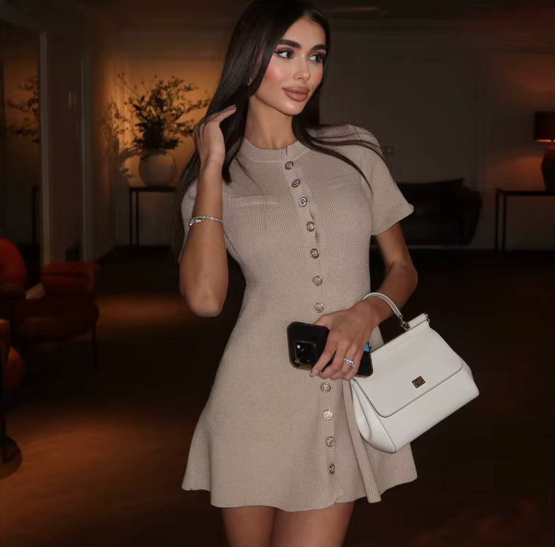A Line Mini Summer Dress 2025 Knitted in Khaki