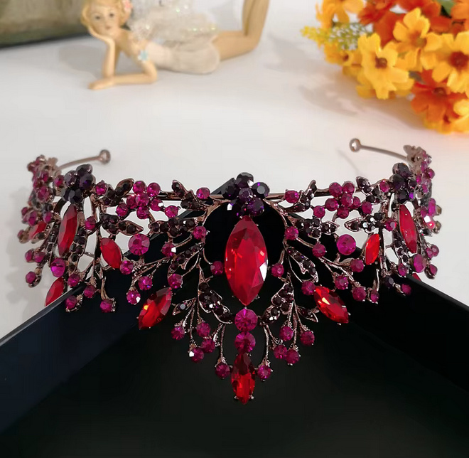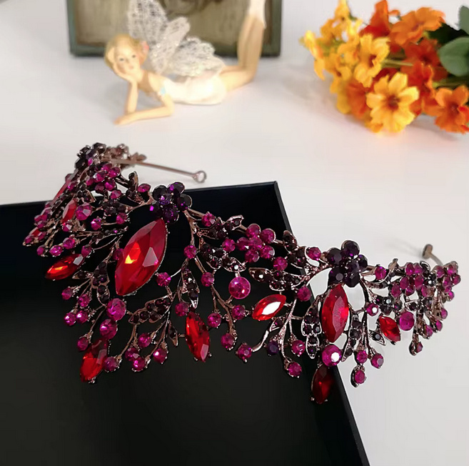 Classic Baroque Bridal Crown Tiara Giovanna in Purple Red