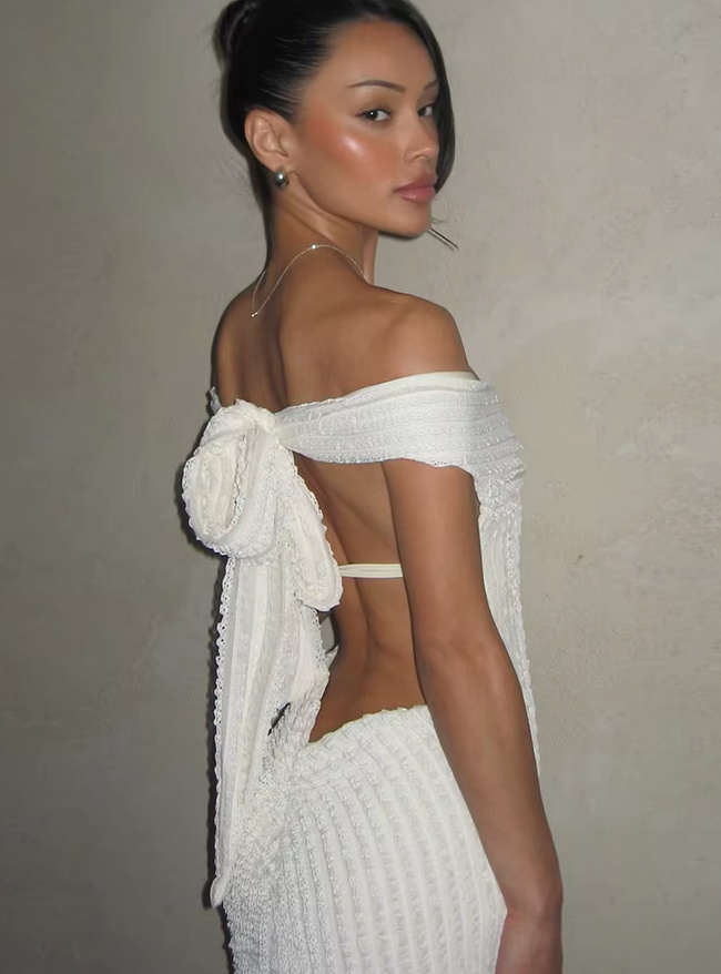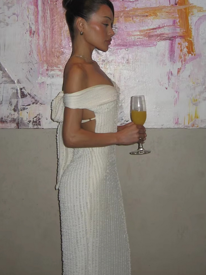 Off-the-shoulder I-line long civil wedding dress with back neckline
