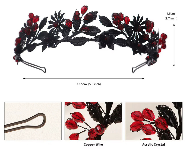 Gothic Style Kristall Brautkrone Diadem Schwarz Rot