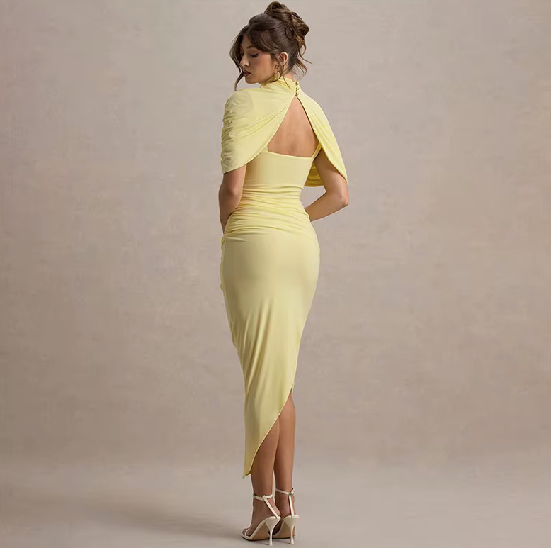 Backless Elegant Pencil Summer Dress 2025 in Yellow Elegant